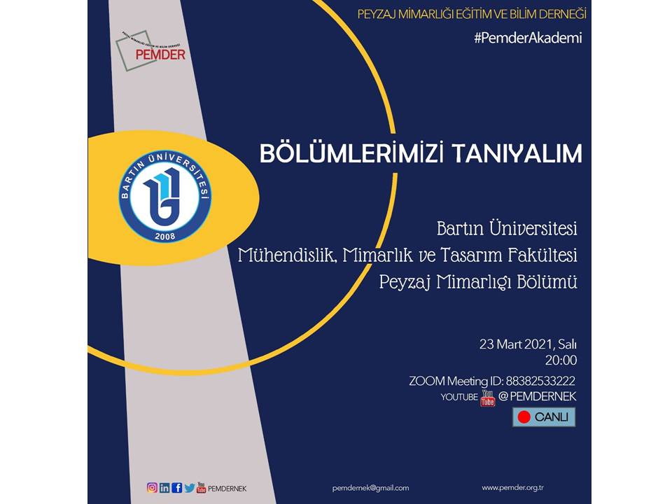 PEMDER’in Bölümlerimizi Tanıyalım kapsamında 9. programının konuğu Bartın Üniversitesi Peyzaj Mimarlığı Bölümü. Bölüm başkanı Sn. Prof.Dr. Sebahat AÇIKSÖZ’ün katılacağı program…