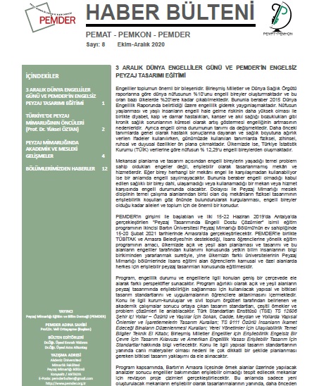2019 yılında çıkarmaya başladığımız ve her üç ayda bir yayınlanan PEMAT-PEMKON-PEMDER Haber Bülteni’nin 5. sayısı yayınlandı. Bu sayımızda Türkiye’de Peyzaj…